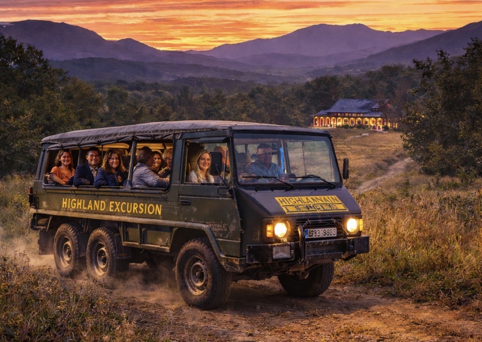 This is a unique experience designed for mountain evenings — think canvas, fresh air, and a touch of rugged charm. We recommend “mountain casual” attire such as jeans and comfortable shoes. While it’s warm and covered, it is more adventurous than a standard shuttle service, and best suited for guests who are comfortable with a little mountain character in their ride.